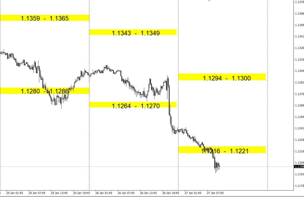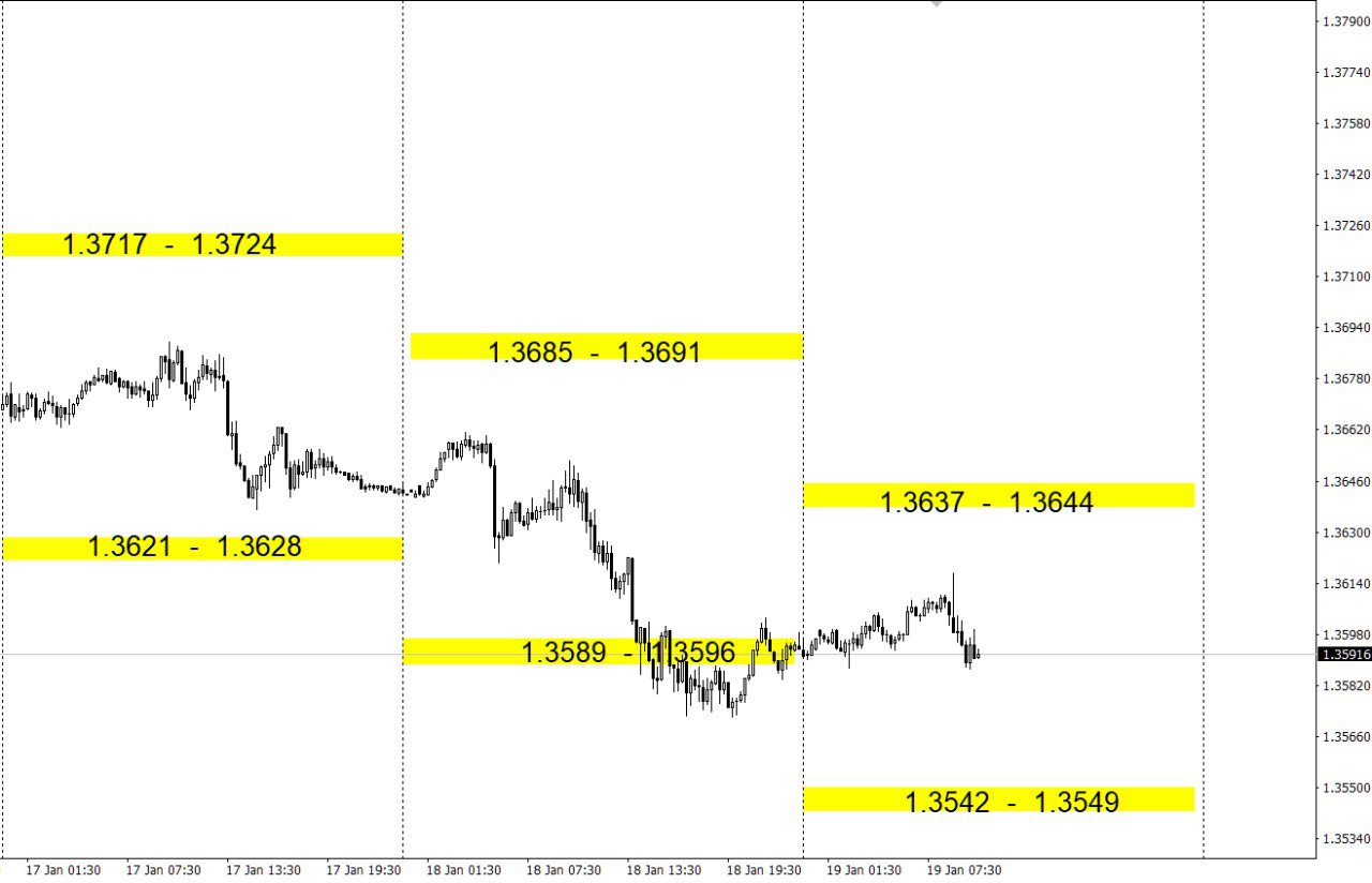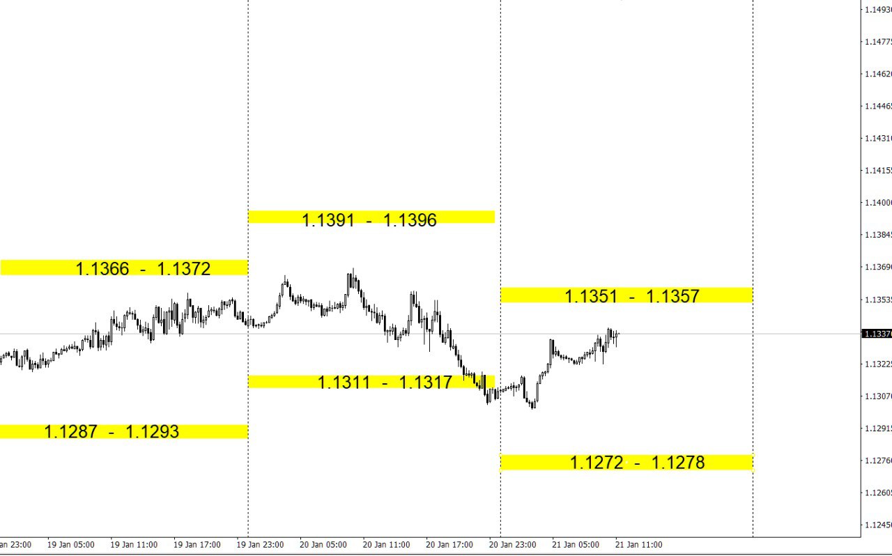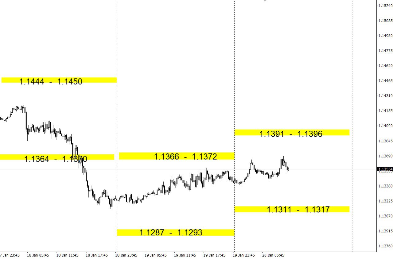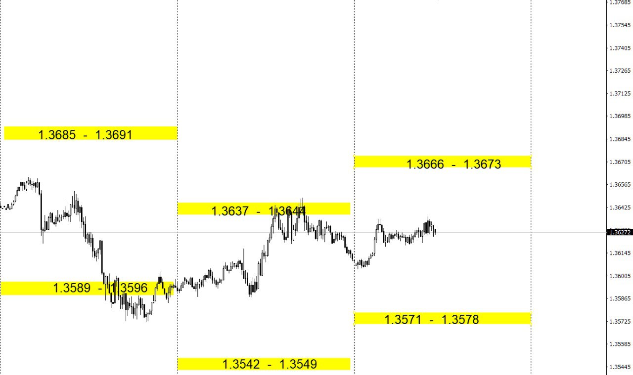 Зоны покупок и продаж по валютным парам на день.