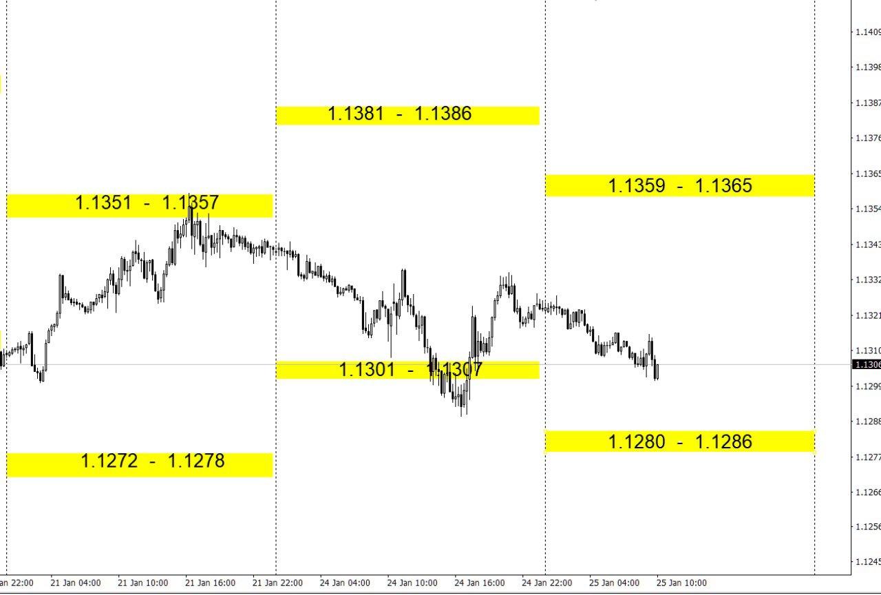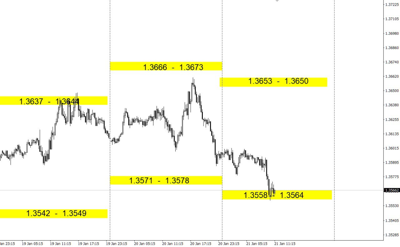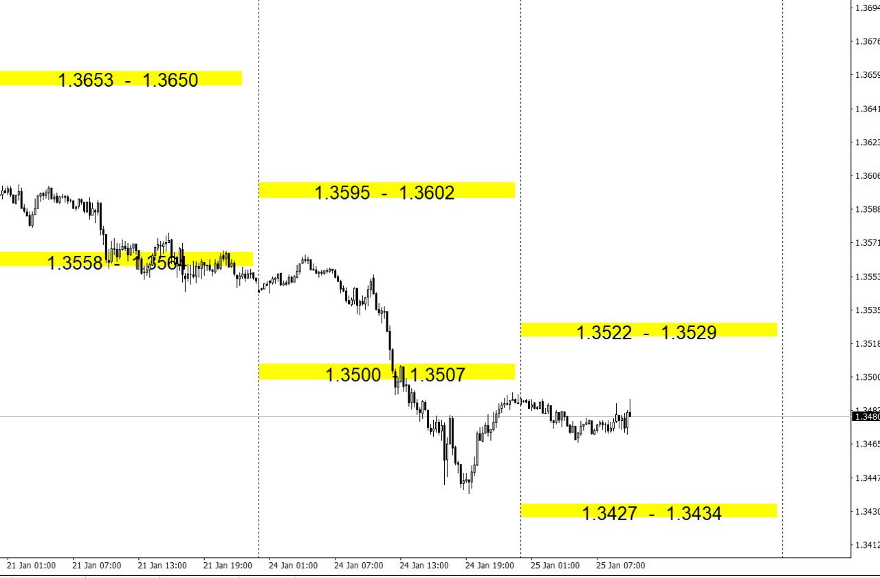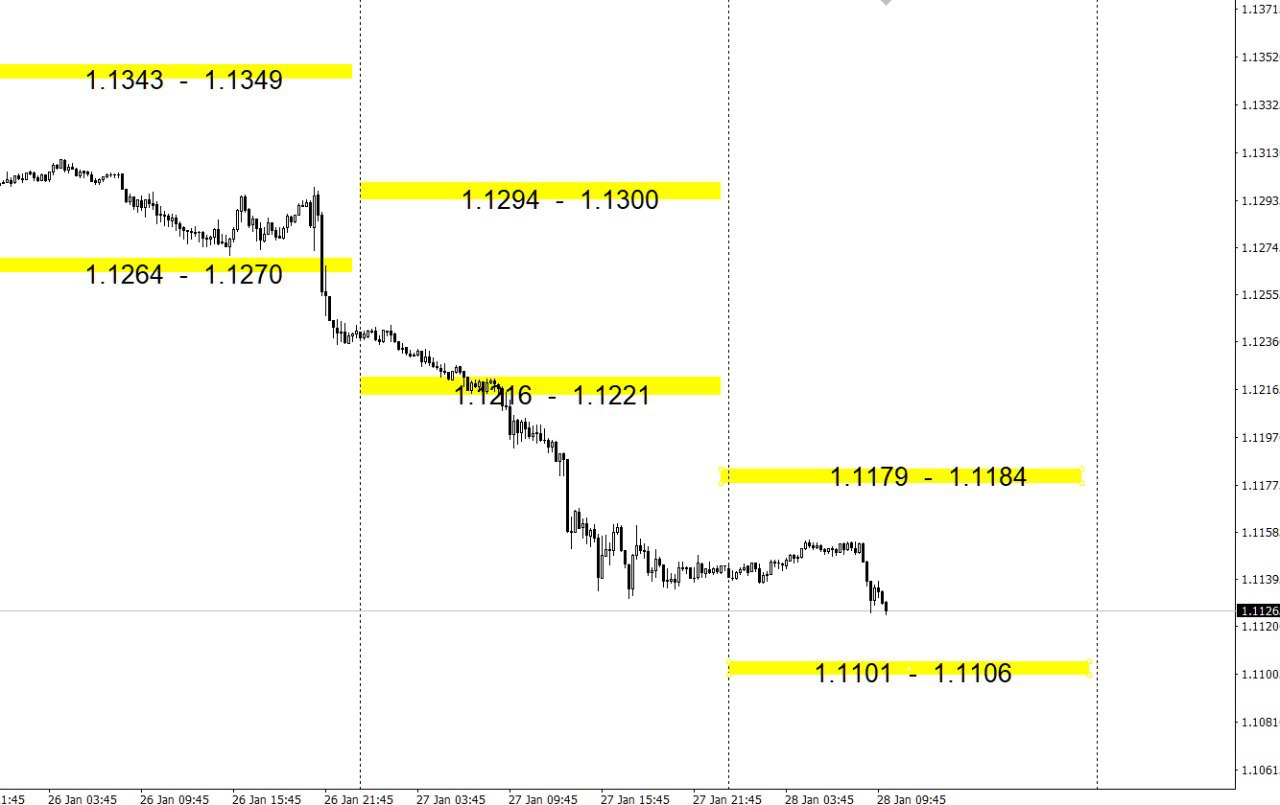 Зоны покупок и продаж по валютным парам на день.