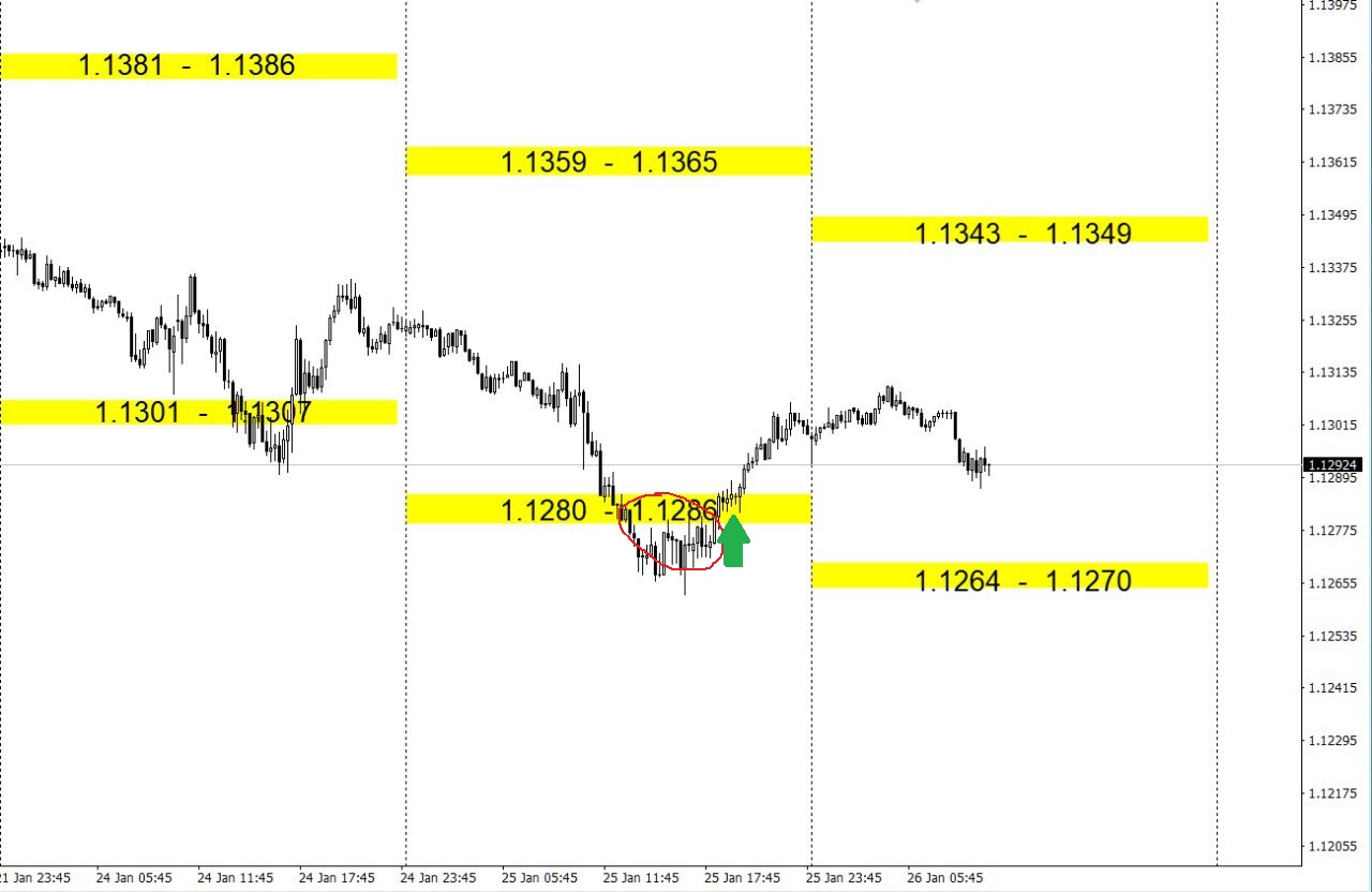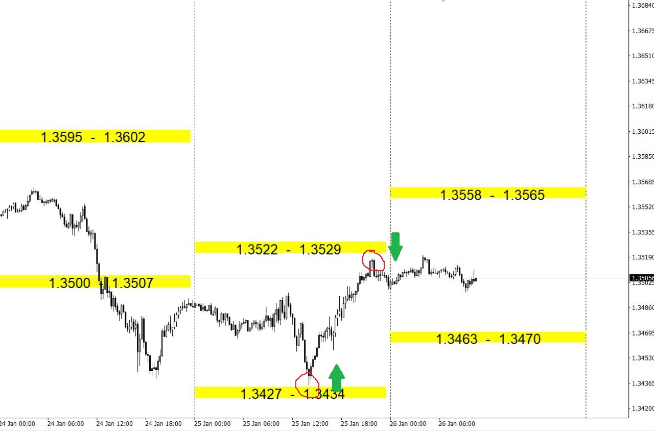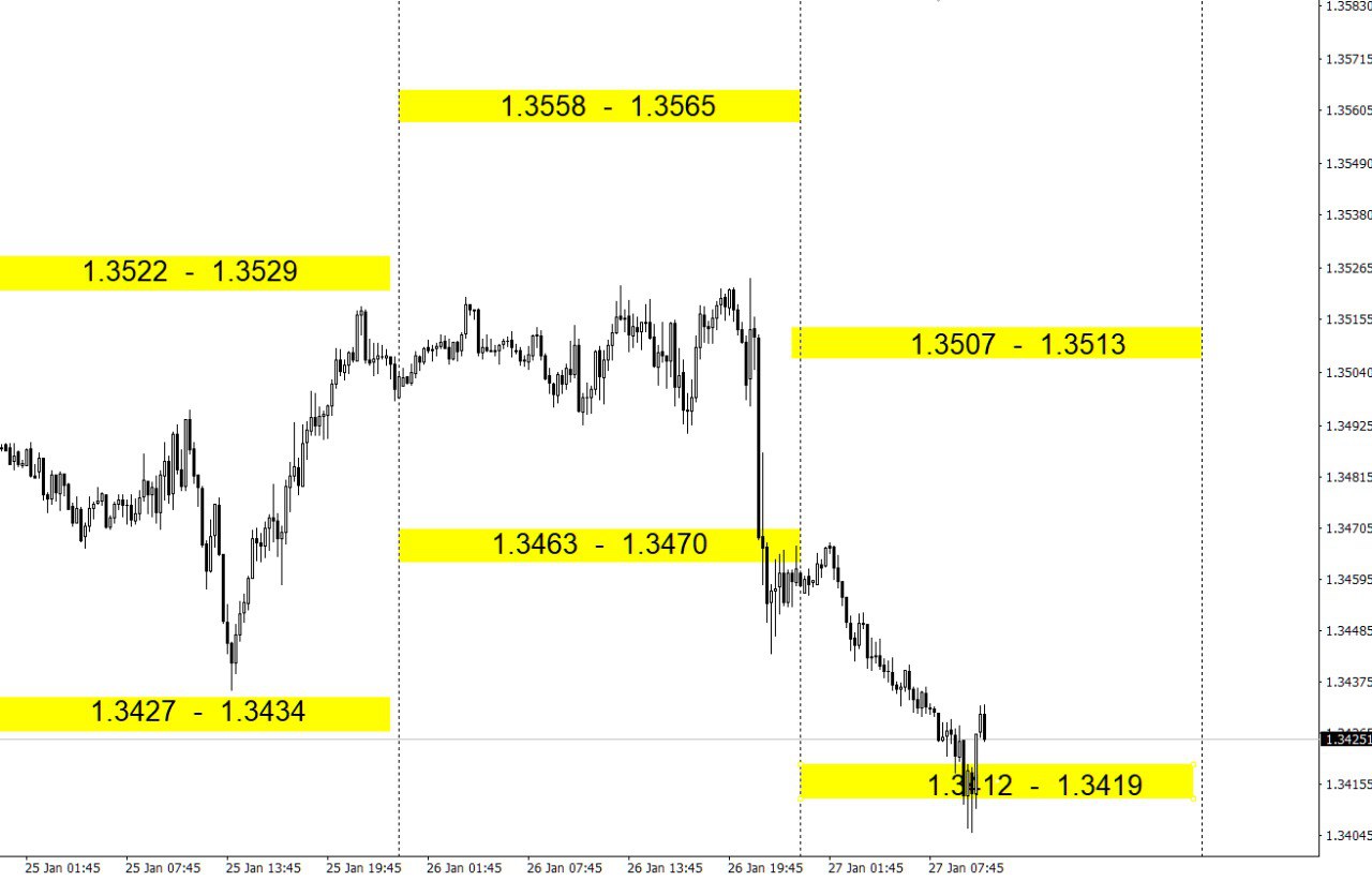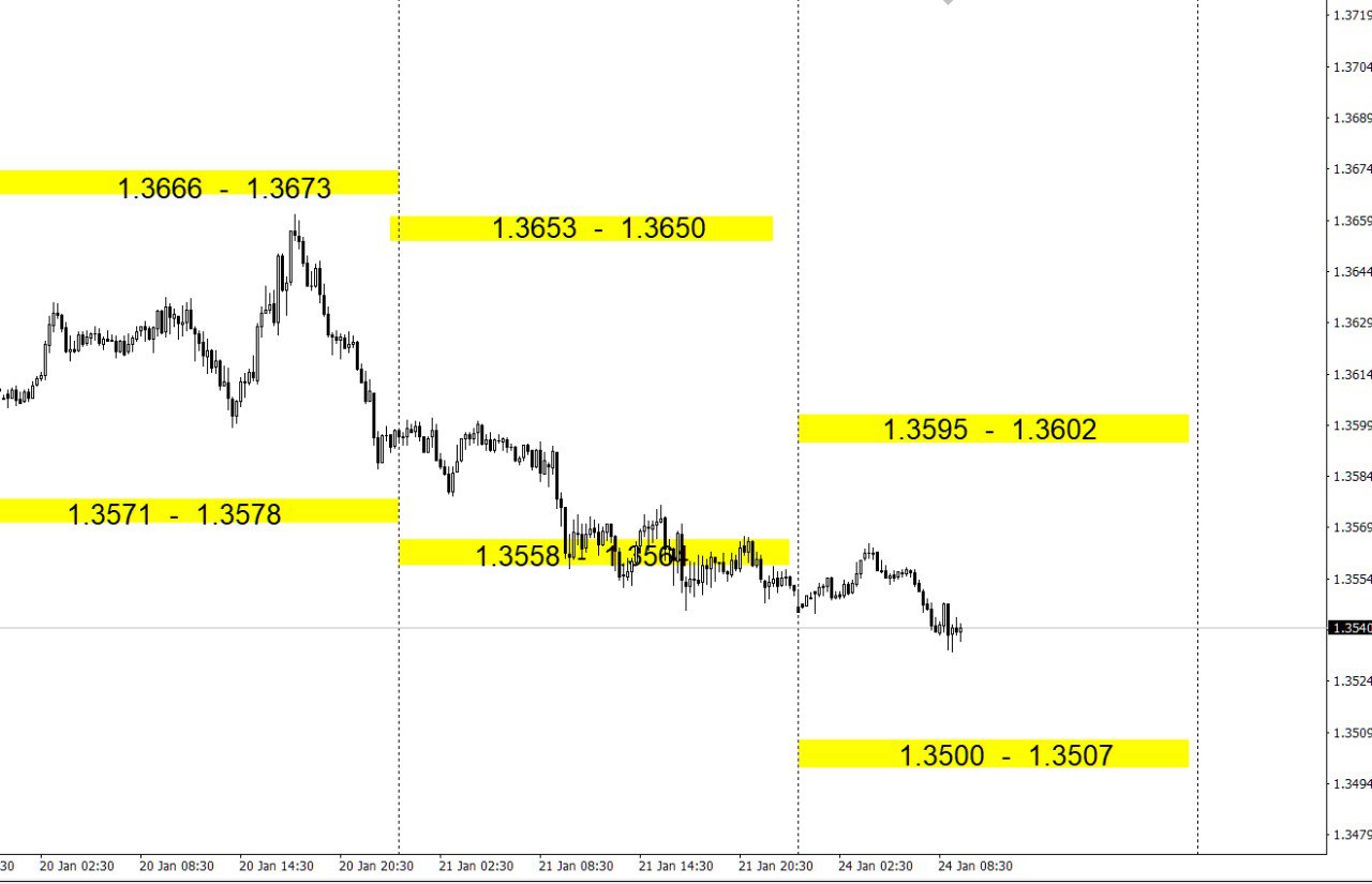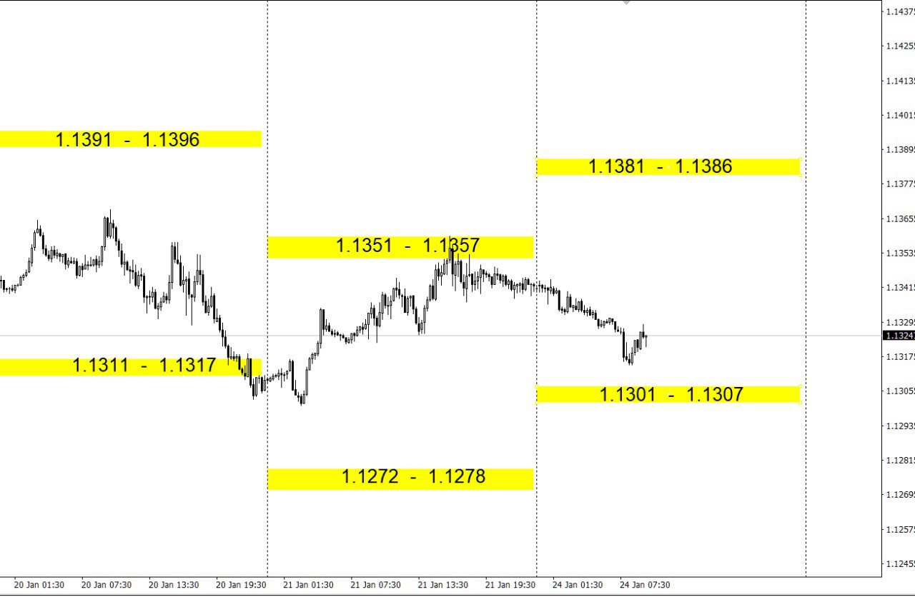 Зоны покупок и продаж по валютным парам на день.