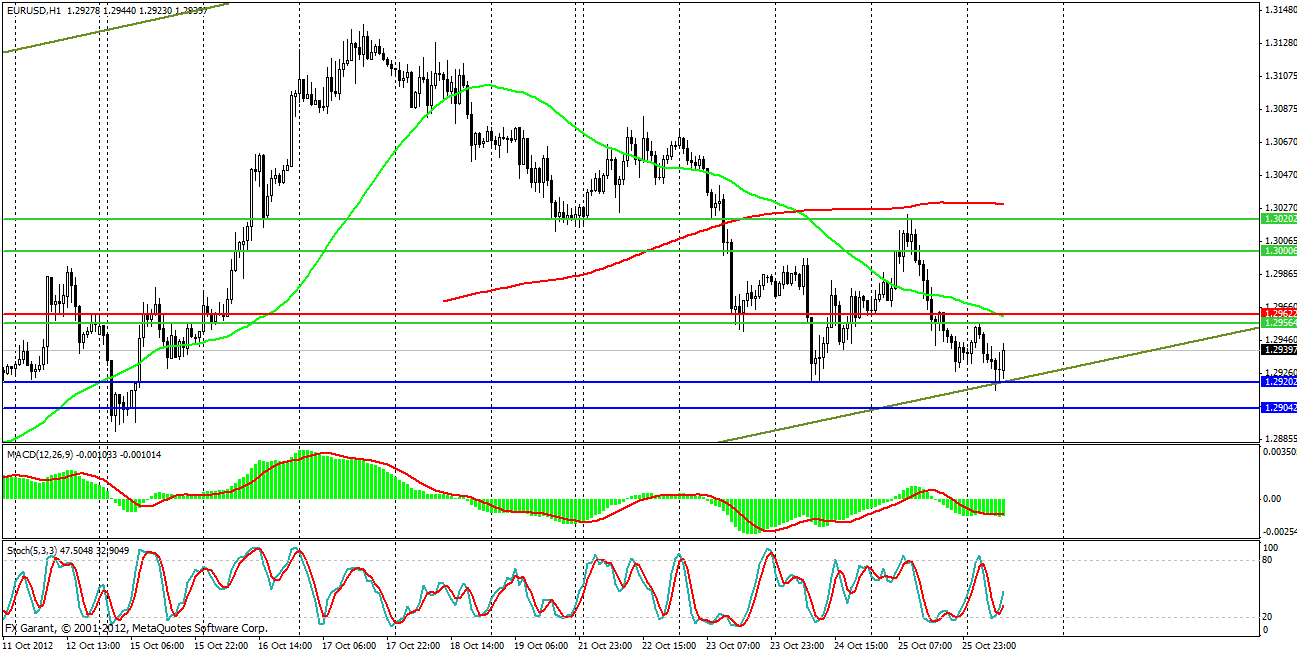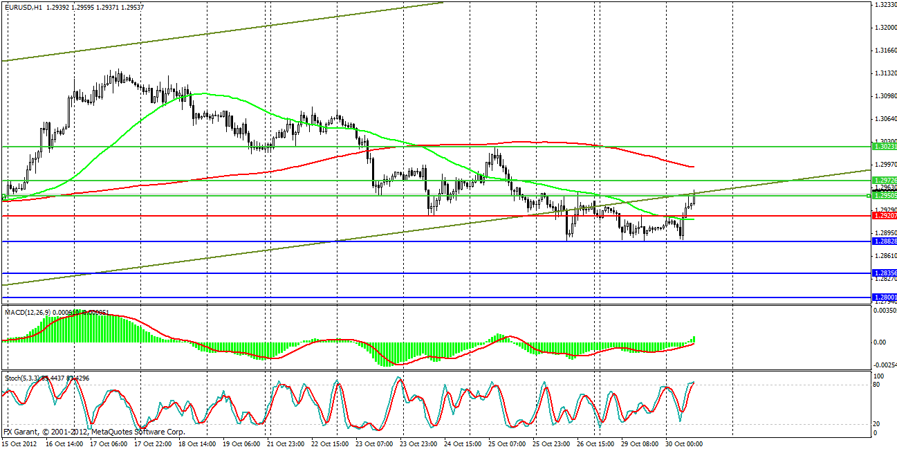 Евровалюта укрепилась в ходе вчерашних торгов. События в США связанные с ураганом Сэнди подорвали позиции американского доллара, добыча нефти была возобновлена, тем не менее страна подсчитывает убытки от последствий урагана. По предварительным подсчетам небывалый по своему масштабу ураган нанес ущерб экономике США уже более чем на 20 млрд. долларов США.