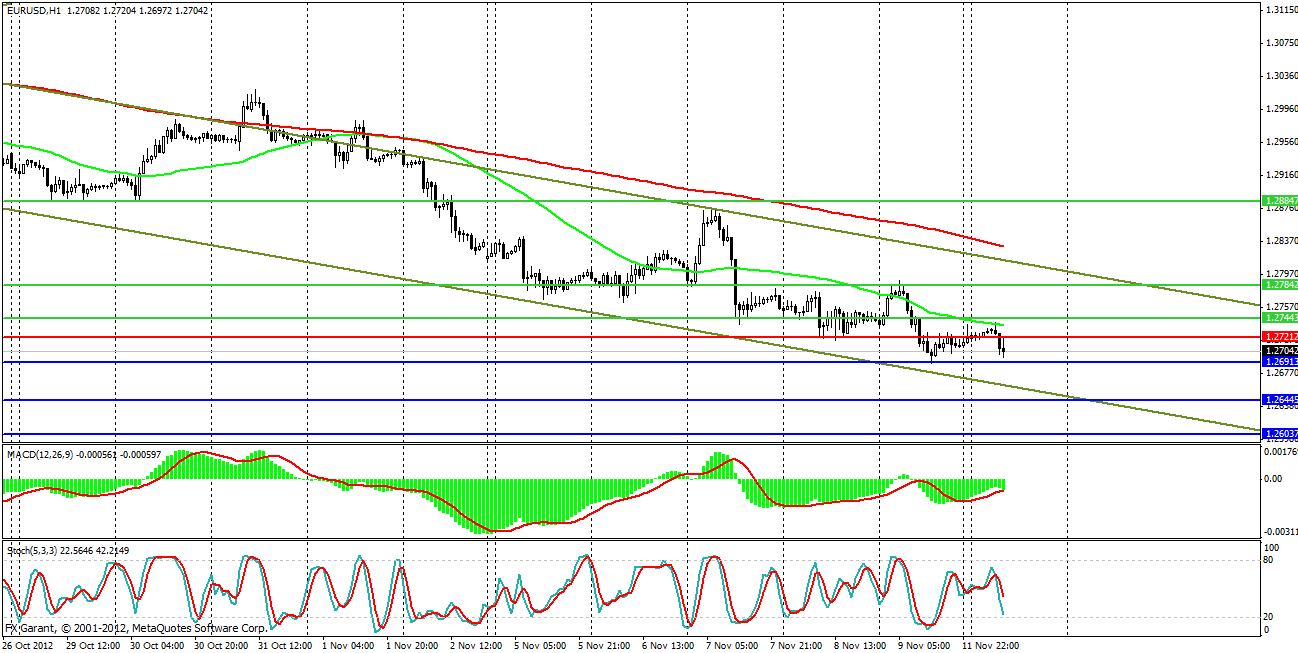 В ходе пятничных торгов американский доллар укрепил свои позиции обновив локальный минимум – 1,2689, после чего пара вела торги в узком диапазоне – 1,2689 – 1,2730. Пятничные новости создали неблагоприятный фон для европейской валюты, так появились слухи о несоответствии бюджета Греции на 2013 год условиям предоставления международной финансовой помощи. Так же Великобритания поставила под сомнение создание единого банковского союза в Еврозоне, т.к. считает, что британские банки могут попасть тем самым под угрозу зависимости от остальных участников объединения. Сегодня день не богат значительными фундаментальными событиями, однако сегодняшнее плановое заседание Еврогруппы сможет оказать поддержку евровалюте.