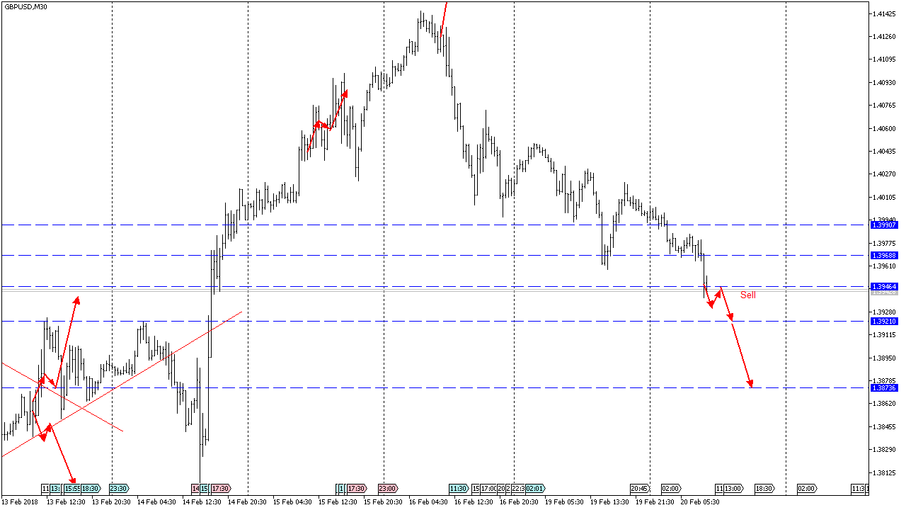 GBP/USD (Продавать) - Хорошая нисходящая тенденция. Пробита дневная поддержка на 1,39900. Если цена пробьет уровень 1,39464 и закрепится под ним, тоит продавать. Цель 1,38736. Стоп лосс 250 пунктов.