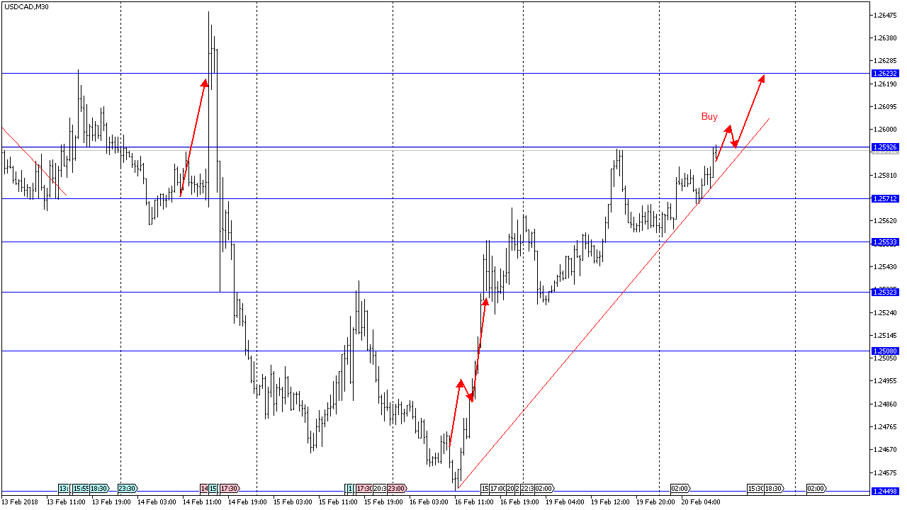 USD/CAD (Покупать) - Новостной негатив поможет паре вырасти. Ждем пробоя 1,27113. Цель 1,27375. Стоп лосс 250 пунктов. (Подробнее в видеообзоре)