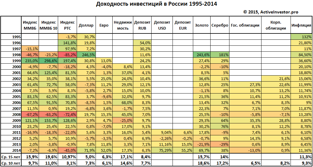 Резюмируя, отметим, что акции страхуют инвестора и от девальвации и от инфляции, но эта страховка имеет свойство проявляться только в условиях выхода из кризиса. К этому добавляется прирост капитала за счет дооценки, что обеспечит доходность выше любых других инструментов инвестирования.