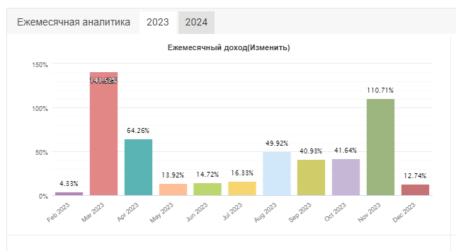 Доходность торговых роботов разная от 3-4% до 20-30% в месяц, это сделано для удобства клиентов, чтобы все пожелания были реализованы, мы сделали разных роботов, но также нужно понимать, что чем агрессивнее торговый робот, тем больше риск потери депозита.